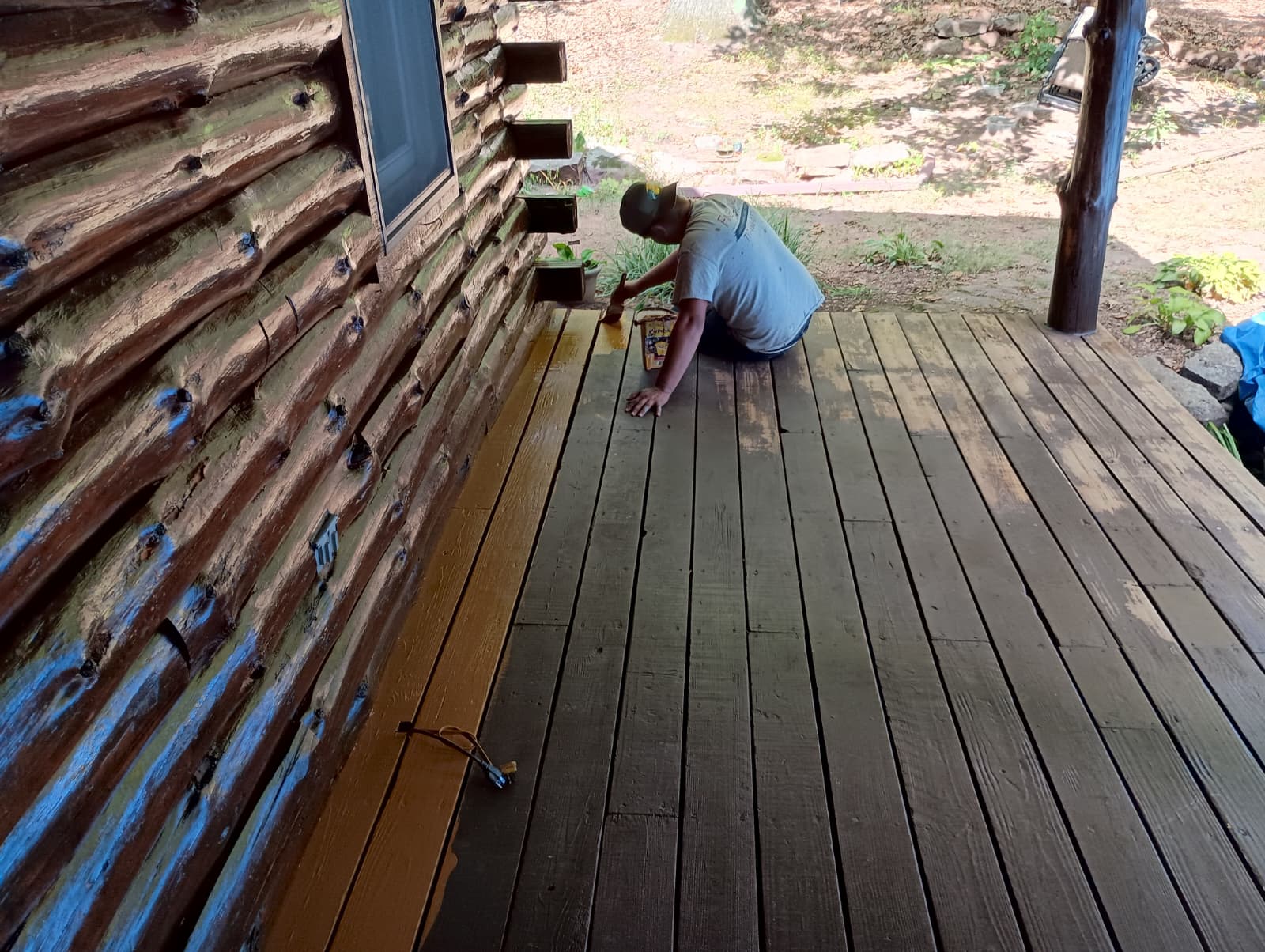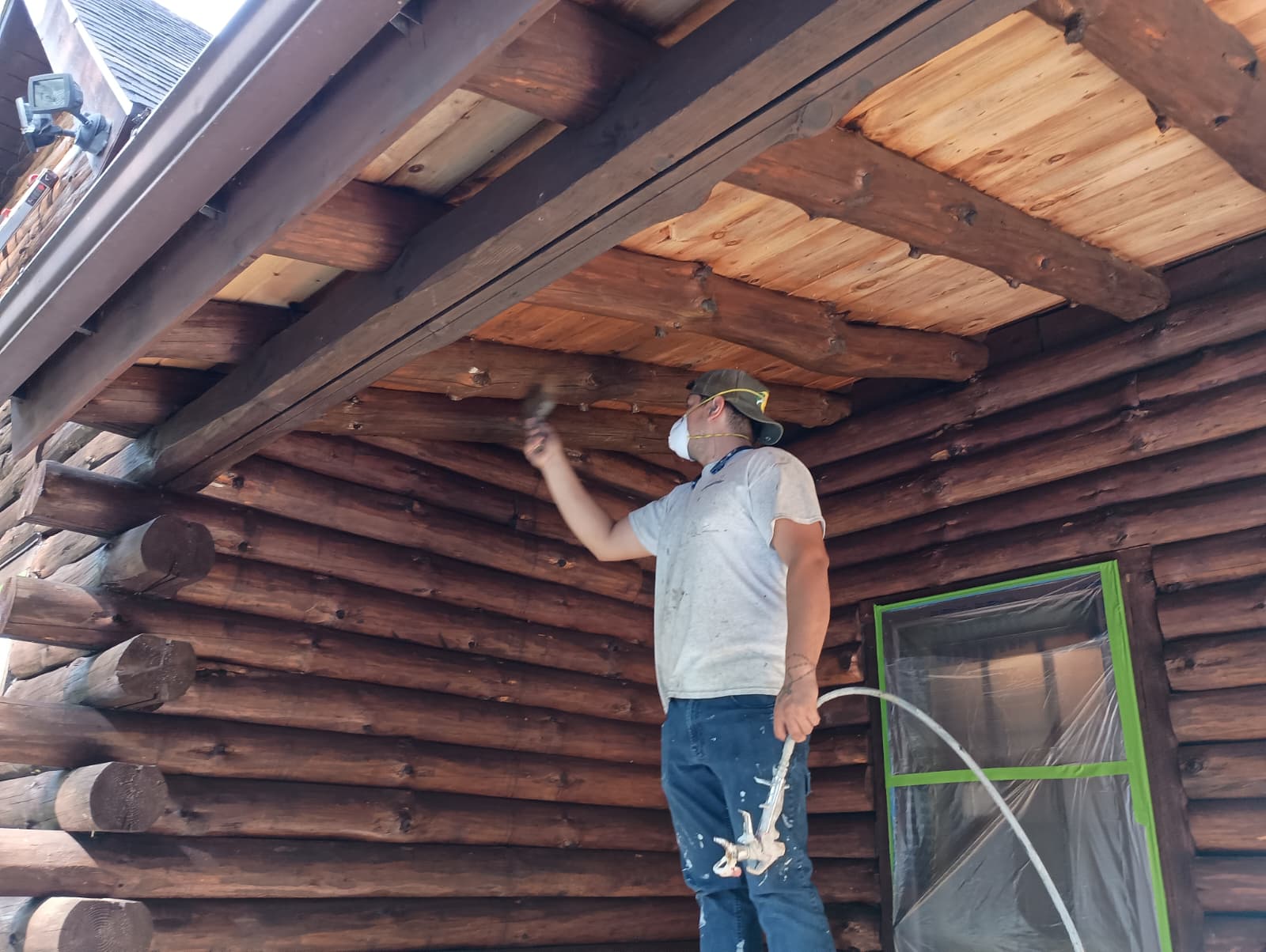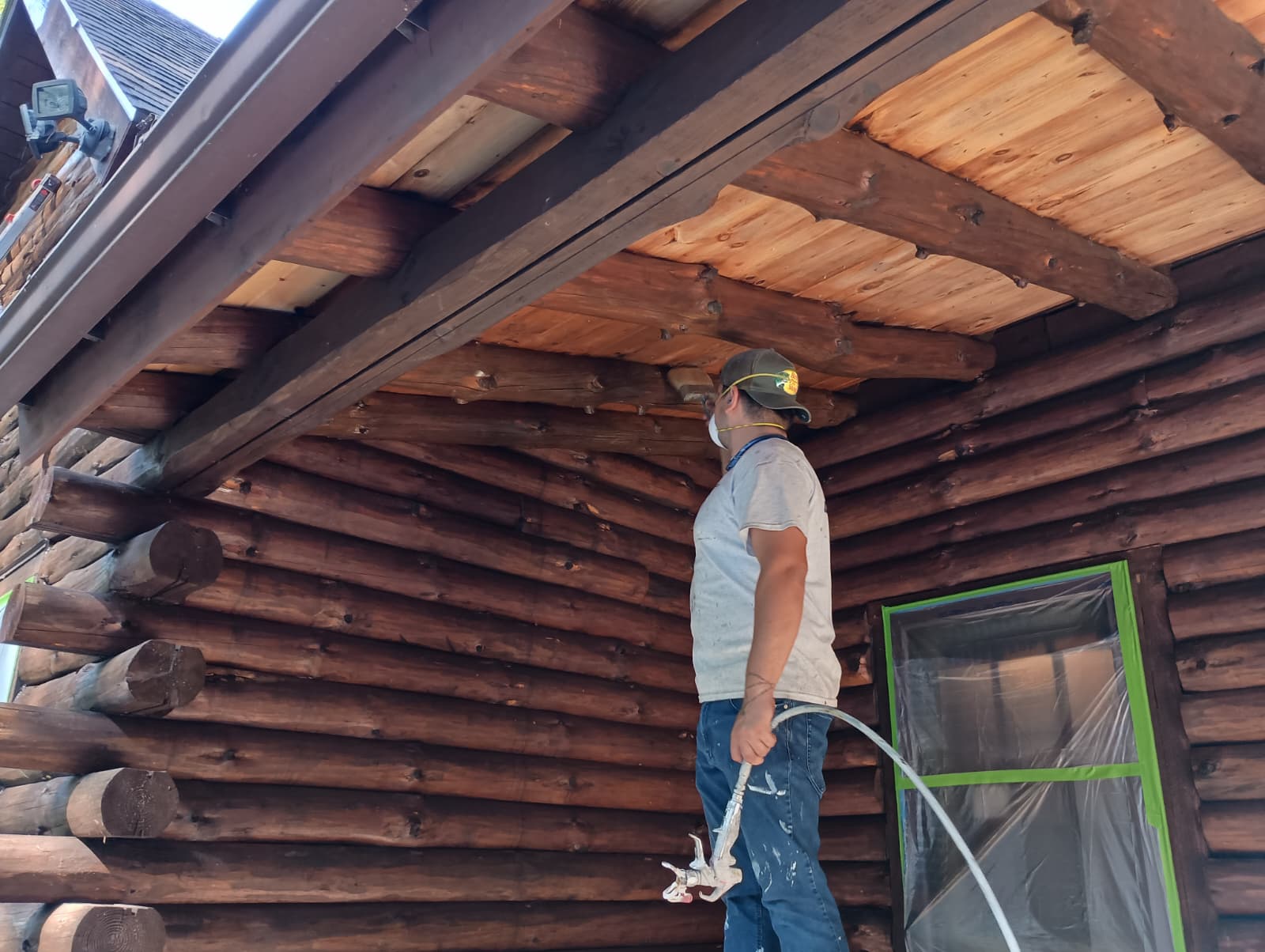 As a heavy-duty product that can cover any surface, we use the oil base, Transformation Stain, on cabins that need to be sanded to the bare wood or simply need an extra coat of stain.