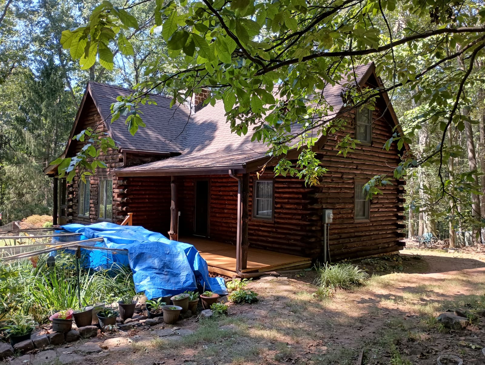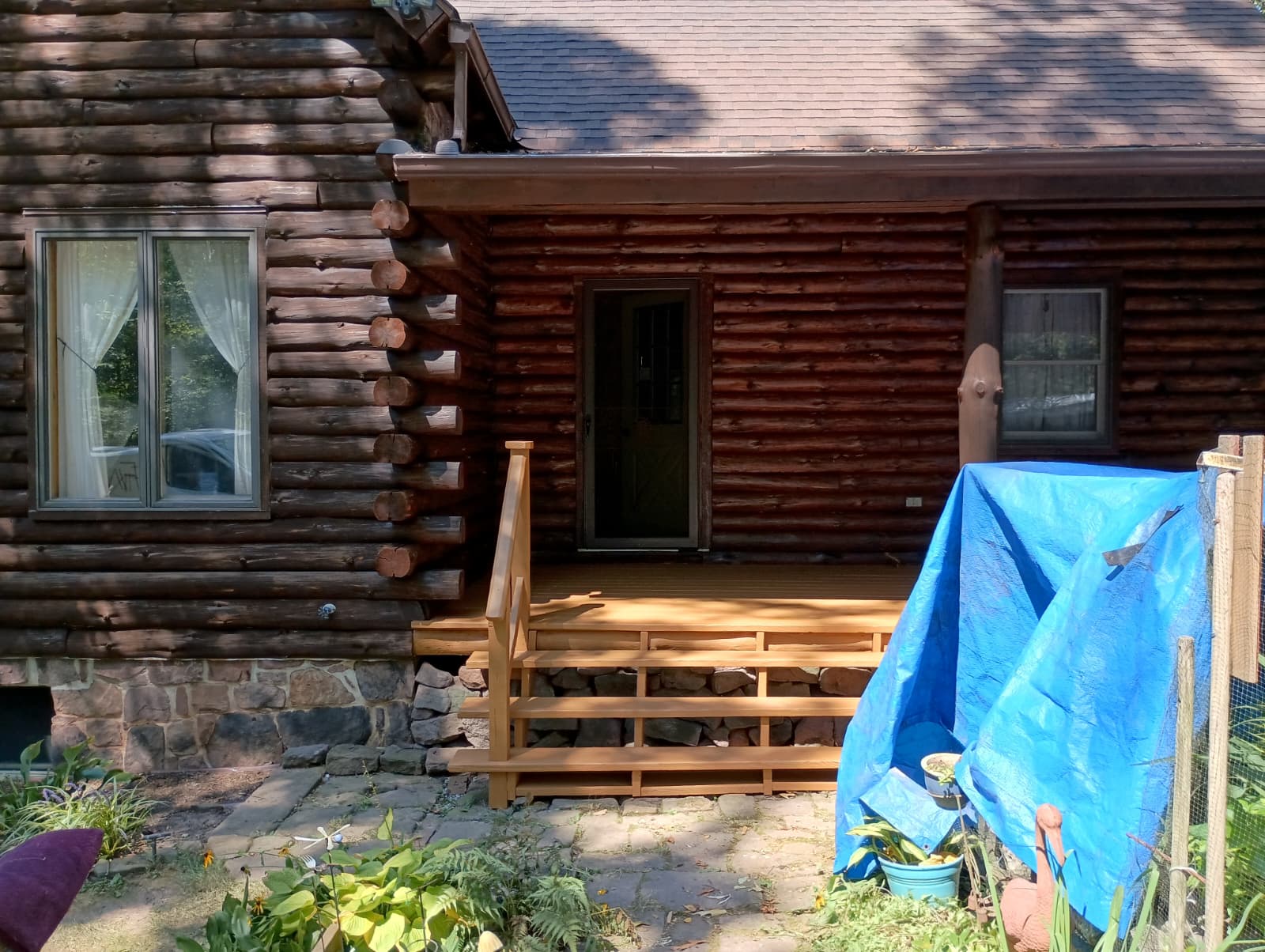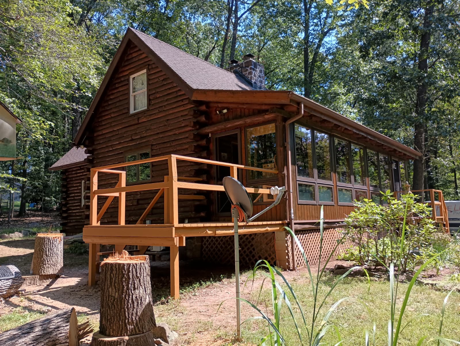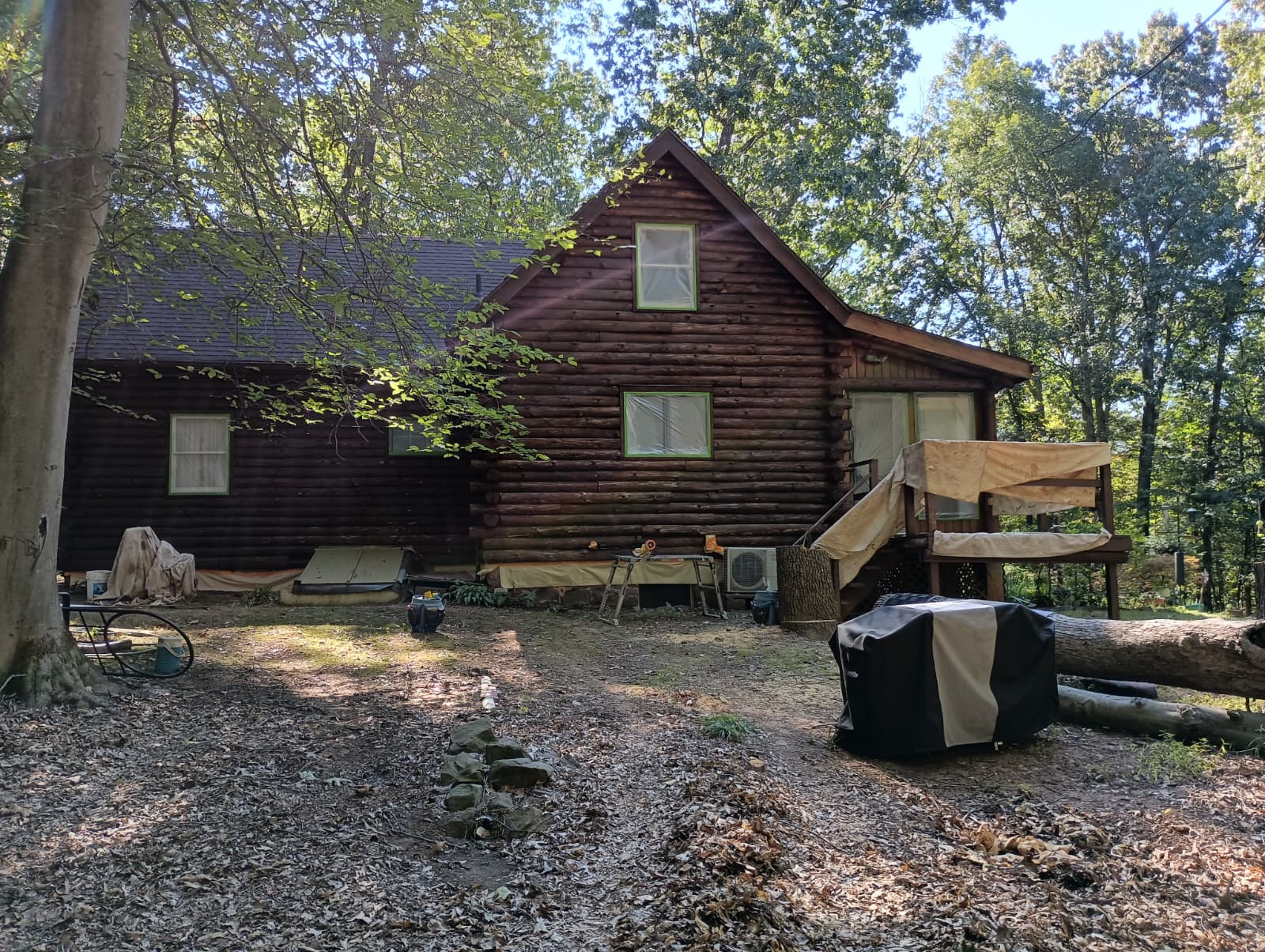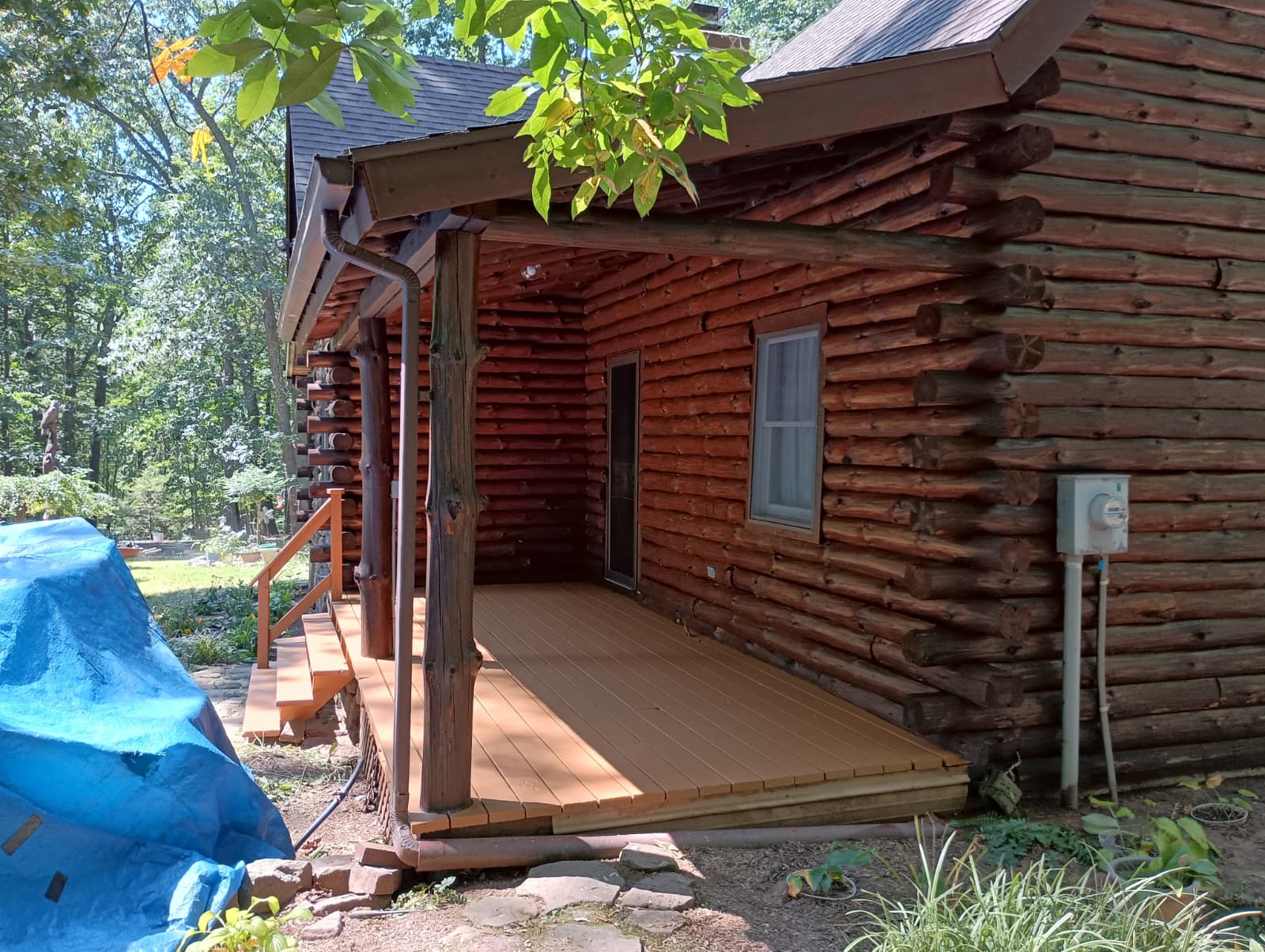 Staining your cabin isn’t just about protection; it also adds a pop of class. And this log cabin staining project in Dover, PA, is no different! Our team stained the cabin walls with a rich, moody shade. We contrasted the decks with a lighter stain, creating a vibrant finish on each aspect of this beautiful cabin. What color of stain would you choose for your log cabin?